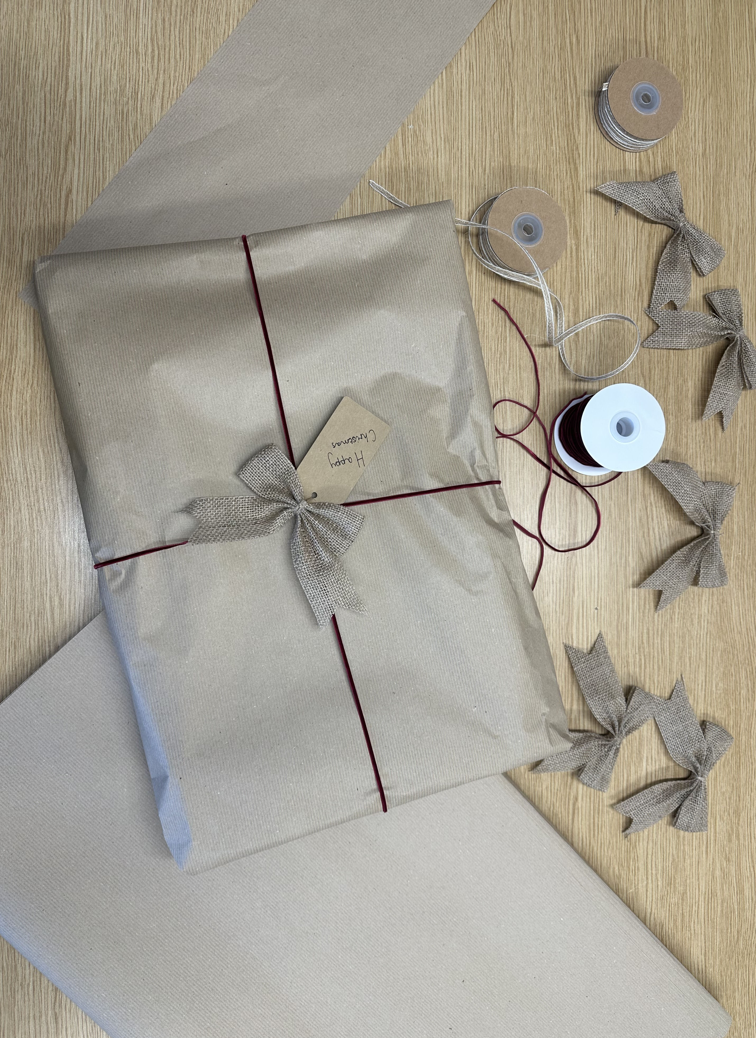 Our dedicated staff provides full care and attention to create an attractive, beautifully finished gift package. We use eco-friendly, recyclable brown wrapping paper that is kinder to the planet and complemented perfectly with a classic string tie and a neat bow.
